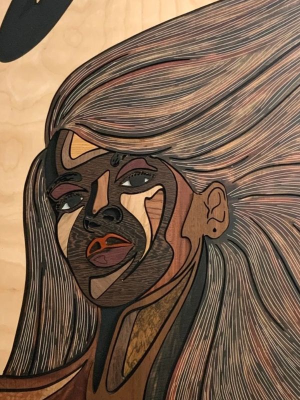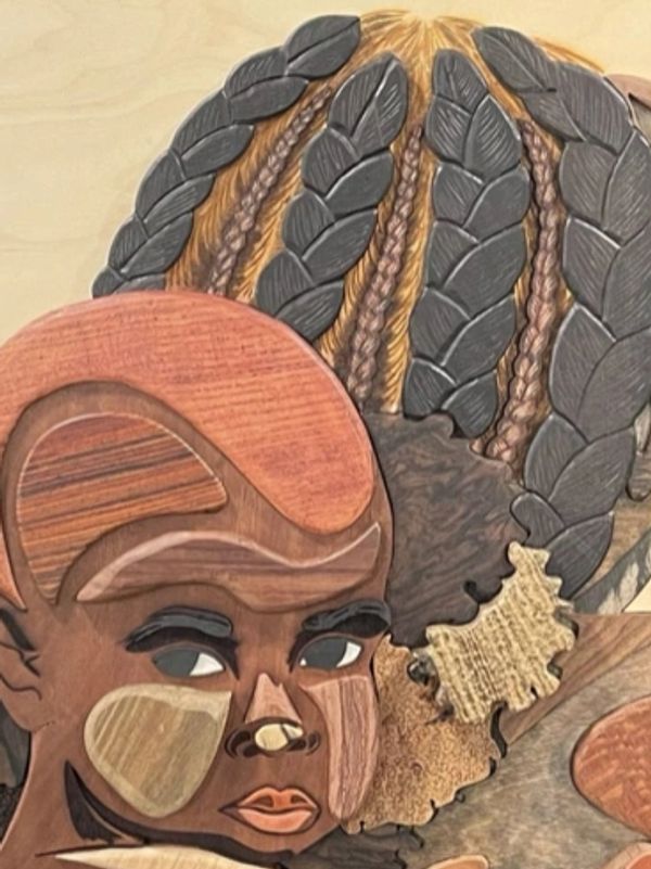 Candice Tavares is a wood artist born and raised just outside of Philadelphia, PA who currently lives and works in the Baltimore metropolitan area. Her art is a celebration of Black beauty, love and culture that highlights the diversity in our hair texture and styling as well as skin complexion. Candice was formally educated in engineering and pharmacy, but her true passion has always aligned with the freedom of creativity. She was encouraged to experiment with different mediums during Saturday morning art classes and introduced to woodworking while helping her dad build and fix furniture in his woodshop. Years later she was able to combine that knowledge and experience to develop a style of art that felt uniquely hers. Though woodworking has often been classified as a more masculine art form, she does not shy away from using it to depict images of softness and femininity. She sees her art as an opportunity to celebrate Black beauty, history and resilience, while challenging the negative narratives about blackness that she sees perpetuated in healthcare and media. Her art is intended to remind viewers of their inherent beauty and value just as they are, just how God made them.