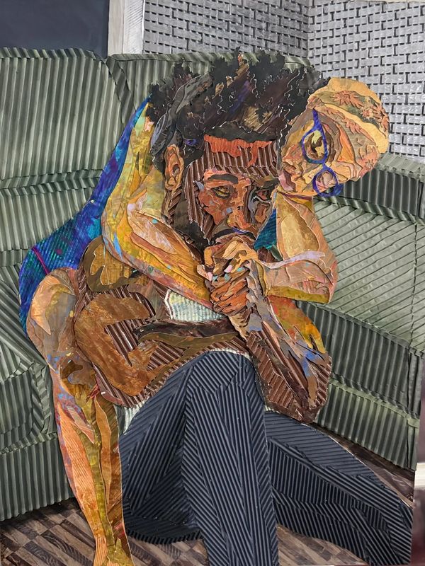cardboard and cardstock, tactile quality to his pieces that adds authenticity and dimension. His art explores the beauty and complexity of Black family life—centering themes of love, resilience, and the everyday moments that shape identity. Through powerful visual storytelling, he seeks to honor and uplift Black communities, shining a light on both quiet and profound moments that reflect their strength, tenderness, and humanity.