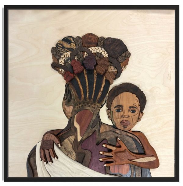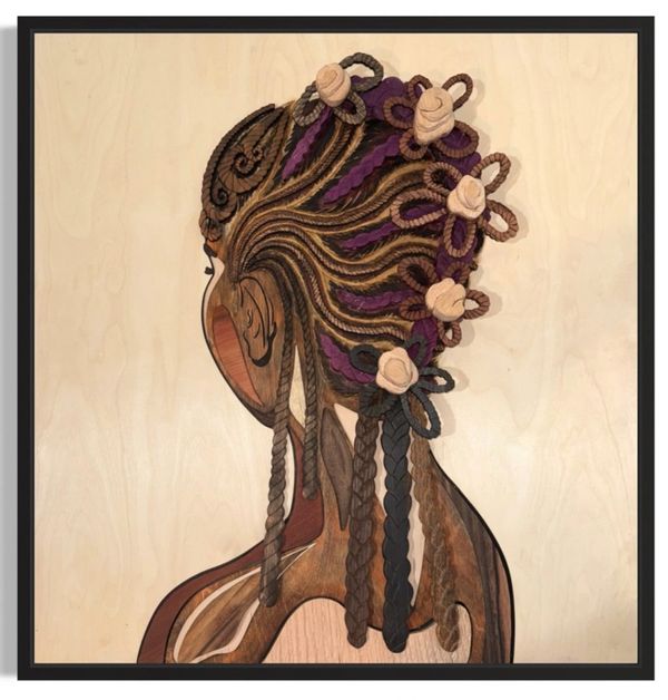Candice Tavares is a wood artist born and raised just outside of Philadelphia, PA who currently lives and works in the Baltimore metropolitan area. Her art is a celebration of Black beauty, love and culture that highlights the diversity in our hair texture and styling as well as skin complexion. Candice was formally educated in engineering and pharmacy, but her true passion has always aligned with the freedom of creativity. She was encouraged to experiment with different mediums during Saturday morning art classes and introduced to woodworking while helping her dad build and fix furniture in his woodshop. Years later she was able to combine that knowledge and experience to develop a style of art that felt uniquely hers. Though woodworking has often been classified as a more masculine art form, she does not shy away from using it to depict images of softness and femininity. She sees her art as an opportunity to celebrate Black beauty, history and resilience, while challenging the negative narratives about blackness that she sees perpetuated in healthcare and media. Her art is intended to remind viewers of their inherent beauty and value just as they are, just how God made them.
