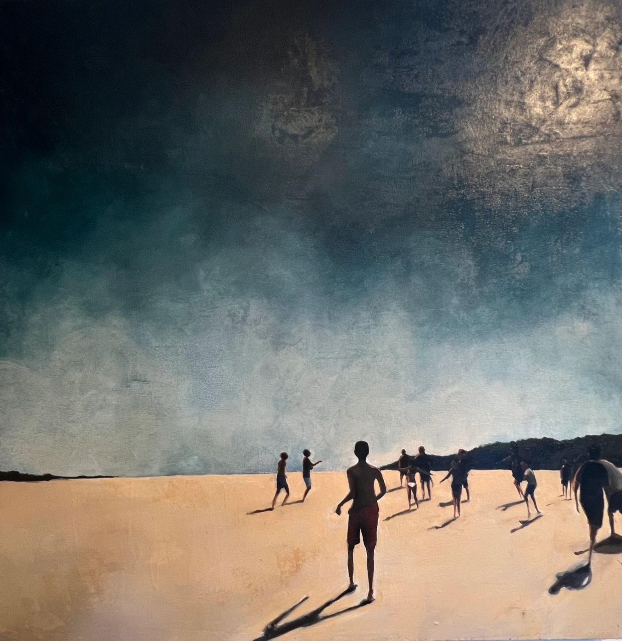Brooke Fierce Bronner is a contemporary painter whose work explores the intimacy of everyday rituals, the quiet choreography of human connection, and the beauty of Black leisure. Rooted in scenes of domestic life, friendly contests, and cultural memory, her paintings celebrate the ways Black people gather, talk shit, compete, and make each other better by virtue of proximity, love, and shared rhythm. Drawing on personal history and collective traditions, Bronner layers bold color with gestural mark-making to capture the emotional texture of presence—spontaneous, structured, and alive. Her work transforms the familiar—backgammon games, kitchen tables, sideline conversations—into luminous narratives of communion, care, and unspoken legacy.