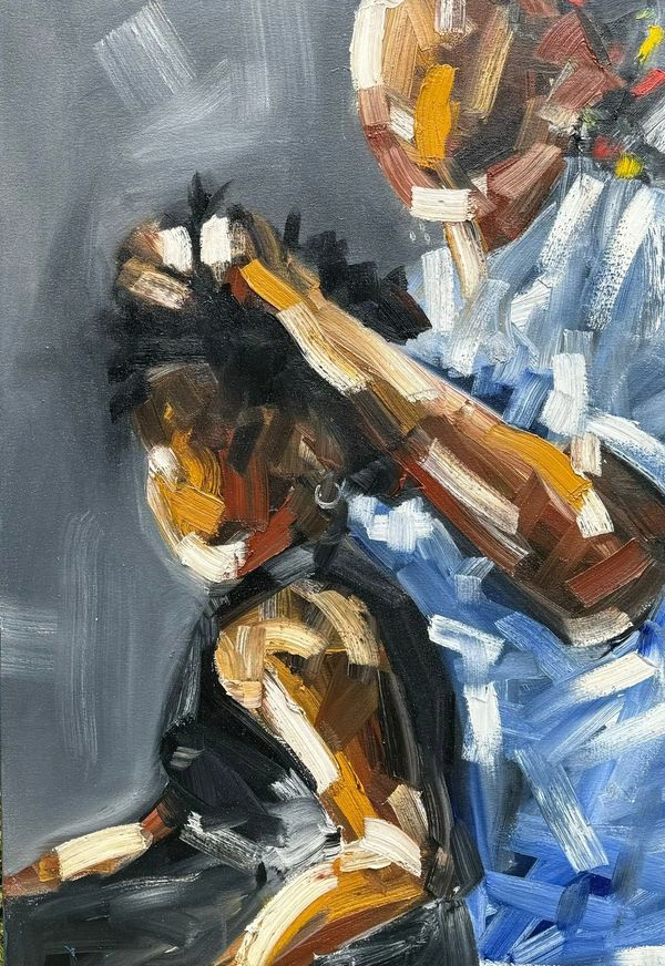 Moses Salihou is a Cameroonian artist based in Toronto. He explores the ideas of belonging and existence by creating work that blends elements of portraiture and abstraction. Salihou's thick application of paint creates a textural intensity that mirrors our own internal complexities. Central to Salihou's work is his belief that human beings are composites of various identities, experiences, beliefs, and emotions. Salihou's gestural application leaves the defining features on the faces of his portraits only loosely representational. The portraits become composites of various people rather than fixed and stable identities, allowing the observer to be a participant rather than just a viewer. These rich surface effects provide Salihou's work with a sense of dynamism that captures the fluidity and movement he ascribes to the concepts of identity and personhood. Salihou has exhibited across the United States and Canada. His work is also in private collections globally, including in Europe, New Zealand, Africa, Asia, Canada, and the US.