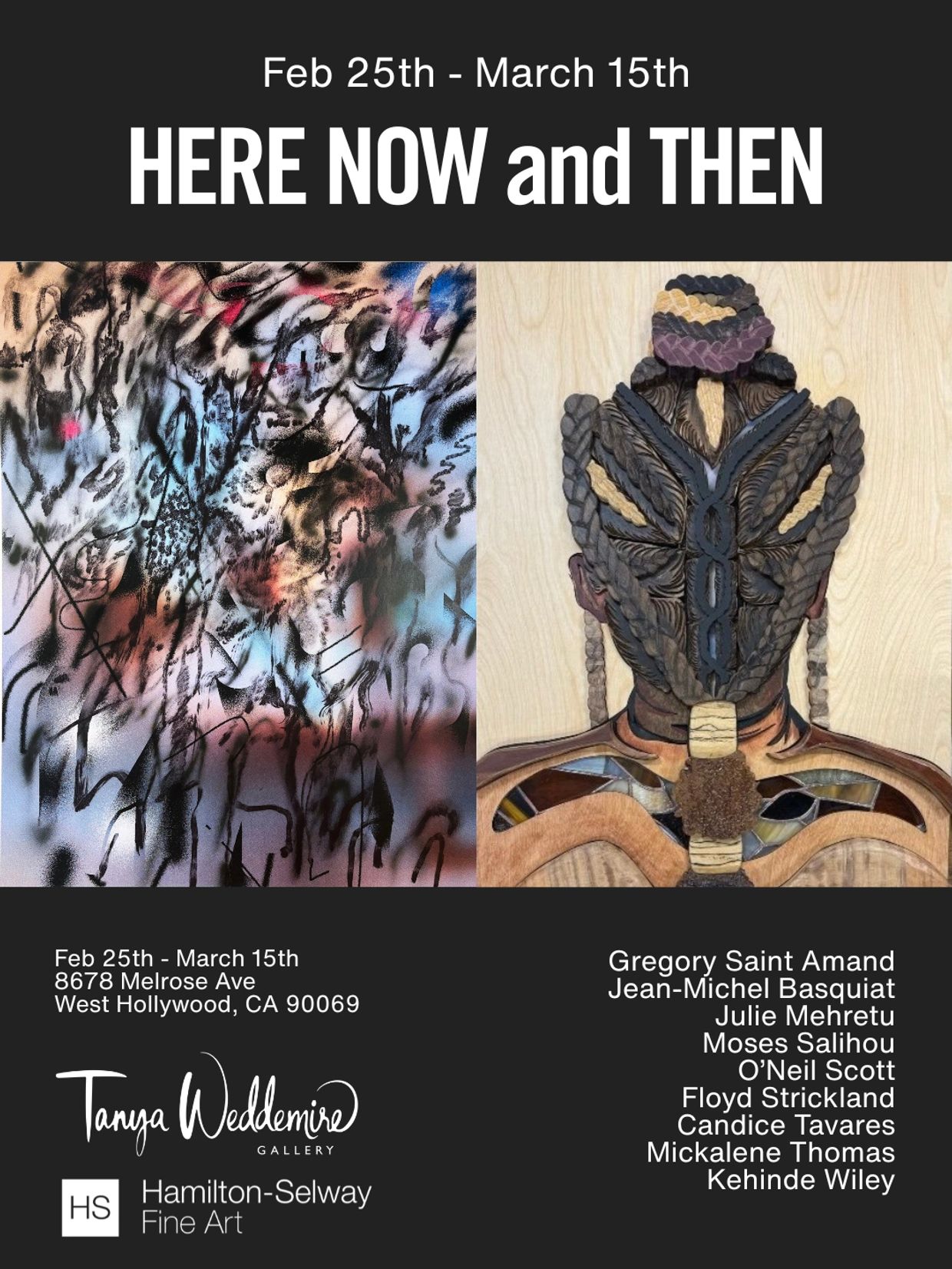 We’re excited to announce “HERE NOW and THEN” in collaboration with Hamilton-Selway Fine Art opening during Frieze LA and Black History Month on Wednesday, February 25th at 5PM ✨ The exhibition includes works by emerging and blue chip artists such as Gregory Saint Amand, Moses Salihou, O’Neil Scott, Floyd Strickland, and Candice Tavares, as well as works by Jean-Michel Basquiat, Julie Mehretu, Mickalene Thomas, and Kehinde Wiley.