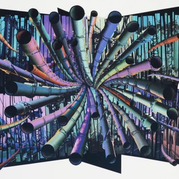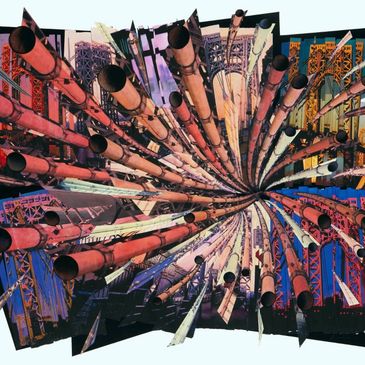 A. Bascove is a NYC-based collagist, painter, and printmaker. Born in Philadelphia in 1946, she received her B.A. from the Philadelphia College of Art. In Paris, living by the Seine, she started drawing bridges, an obsession that only intensified on her return to NYC. “From an early age I learned that the world only makes sense to me through art. My love of my City and fascination with science, architecture, and literature has always driven my explorations. I love to share that exhilaration and curiosity through my work.”