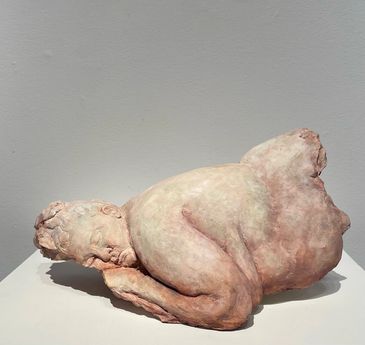 I sculpt the body in unnatural poses to explore our psychological realities through our physical bodies. Our emotions are held within our bodies: the way we hold ourselves, whether that is with straight strong postures or hunched-in closed shoulders conveys distinct and specific emotions of a person, essentially a peek into their psyches. Our subconscious minds cause impactful body reactions, most of which are so complex that it's difficult to fully describe in words alone. In my practice, I aim to describe the indescribable; to create a visual clarity around the uncertainties of our mind and body connections.