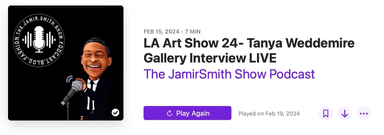 LA Art Show opening and we are interviewing the talented Tanya Weddemire, discussing her growing up in Jamaica , building her fashion brand and opening an amazing art gallery highlighting some of the most talented artists around. Support this creative on Instagram @tanyaweddemiregallery