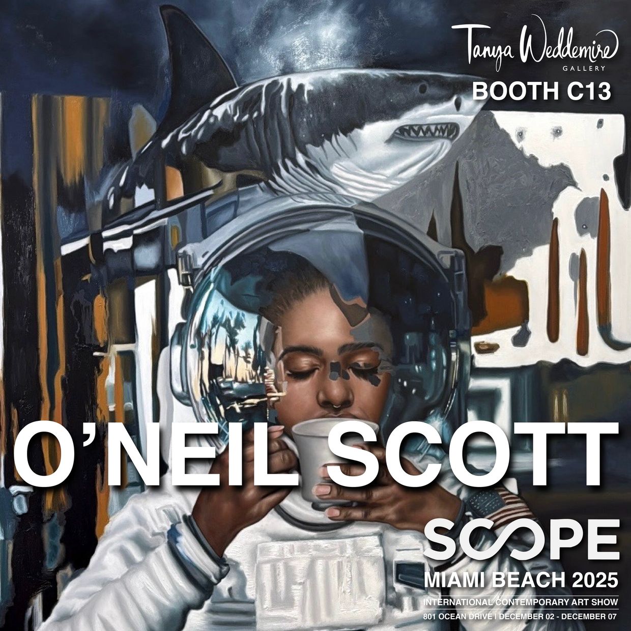 O’NEIL SCOTT is a Philadelphia-based artist, born in Spanish Town, Jamaica whose practice is rooted in portraiture. Influenced early by his grandfather and uncle, both of whom pursued creative paths. Scott began drawing as a child, filling notebooks with characters both imagined and observed. Scott’s work is inspired by the Old Masters and contemporary realists alike. His transition from acrylic to oil paint marked a pivotal moment in his practice, allowing for greater depth, pliability, and exploration of complex narratives. Through his portraits, he engages with themes such as social justice, climate change, and subjects that speak to both personal truth and collective urgency. In 2025, Scott debuted his first solo museum large scale works exhibition at the Zillman Art Museum (University of Maine) in Bangor, Maine, a milestone that showcased the breadth of his evolving work and his commitment to storytelling through a Black diasporic lens. At the core of his paintings is a desire to invoke mindfulness, inspire contemplation, and foster deeper understanding of the human condition. Scott’s work has been featured at several prominent art fairs in the US and exhibited with notable galleries, and his paintings are part of esteemed corporate collections as well as private collections both in the U.S. and internationally.